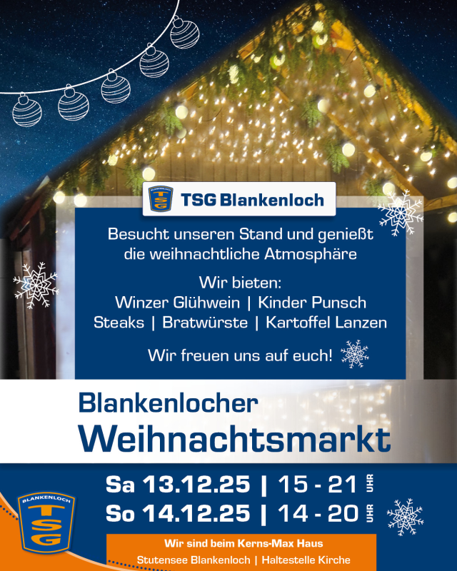 Für Auf- und Abbau, Bewirtung und Kuchenspenden suchen wir noch helfende Hände. Bitte tragt euch in die Listen in der TSG-Halle ein, meldet euch online unter Arbeitsstunden oder per E-Mail an office@tsg-blankenloch.de