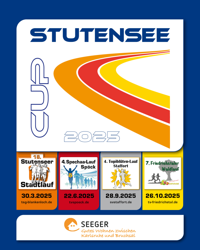 Mit dem Stadtlauf startete auch der Stutensee CUP in seine zehnte Runde. Nach der Auftaktveranstaltung bei der TSG folgen nun die Läufe in Spöck (22.06.25), Staffort (28.09.25) und Friedrichstal (26.10.25).